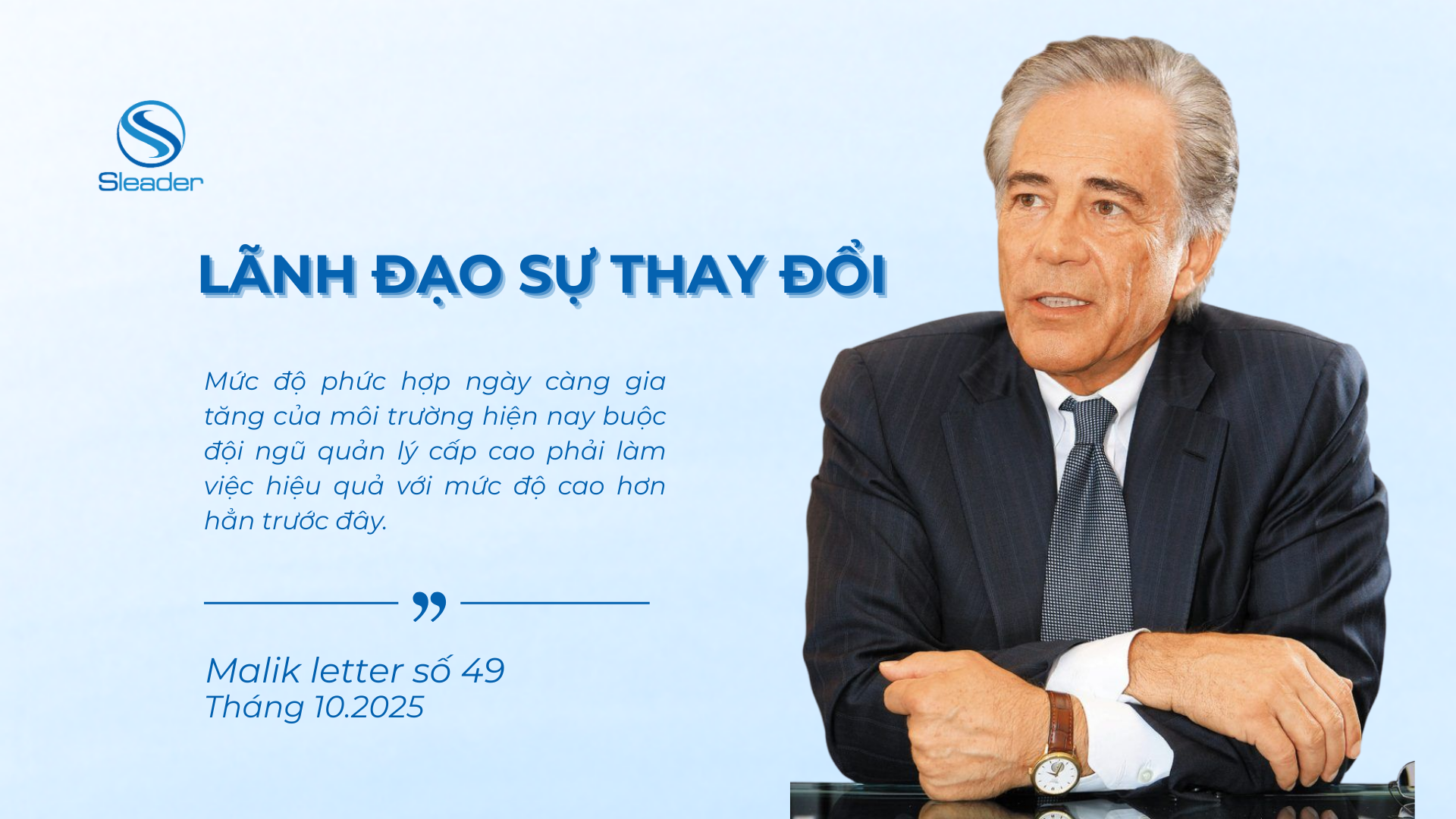 Với sự hợp tác ngày càng chặt chẽ cùng Viện Malik, Thụy Sỹ - một tổ chức tư vấn hàng đầu châu Âu về quản lý hệ thống, quản trị và lãnh đạo hiệu quả, SLEADER cung cấp dịch vụ tư vấn đạt chất lượng châu Âu, giúp cộng đồng doanh nghiệp Việt Nam phát triển vượt bậc và trường tồn, góp phần hiện thực hóa khát vọng 2045 của cả dân tộc.