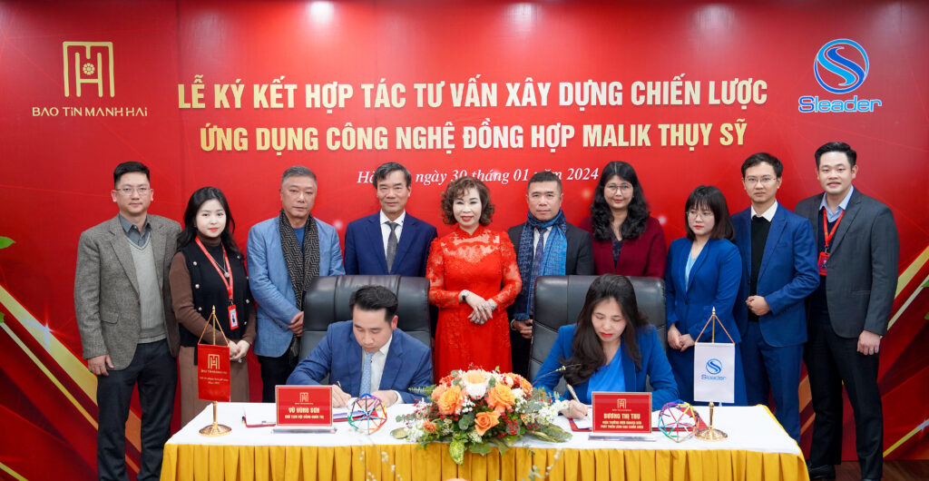 Ngày 30/01/2024, tại Hà Nội, đã diễn ra lễ ký kết hợp đồng tư vấn xây dựng chiến lược phát triển, giai đoạn 2024 – 2028 bằng ứng dụng công nghệ Đồng hợp Malik giữa Viện Nghiên cứu Phát triển Lãnh đạo Chiến lược (SLEADER) và Công ty Cổ phần Bảo Tín Mạnh Hải. Thương